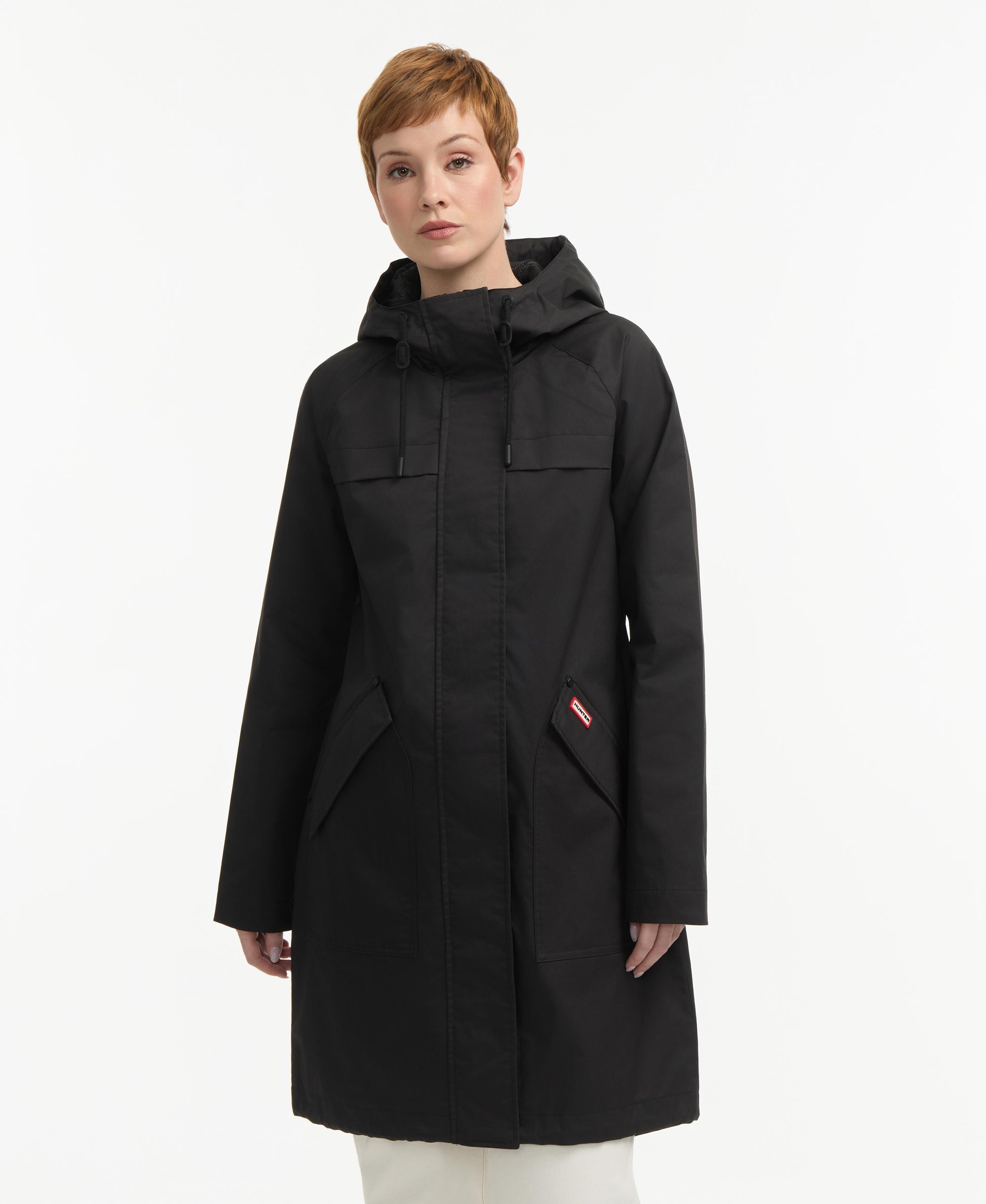 Hunter Women's Jency Cotton High Low Rain Coat Black Reg