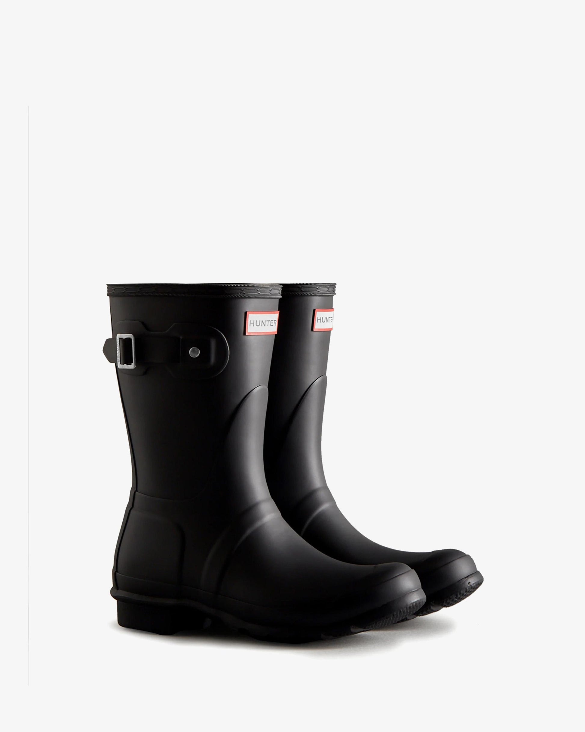The Women's Original Short Rain Boot is a shorter version of the iconic Hunter Original Tall Boot and perfect for wet-weather conditions. Formed of natural rubber each boot is handcrafted and assembled over three days before being vulcanised for superior protection. The Hunter Original tread pattern and comfortable 100% recycled polyester lining completes the design on this 100% waterproof boot.