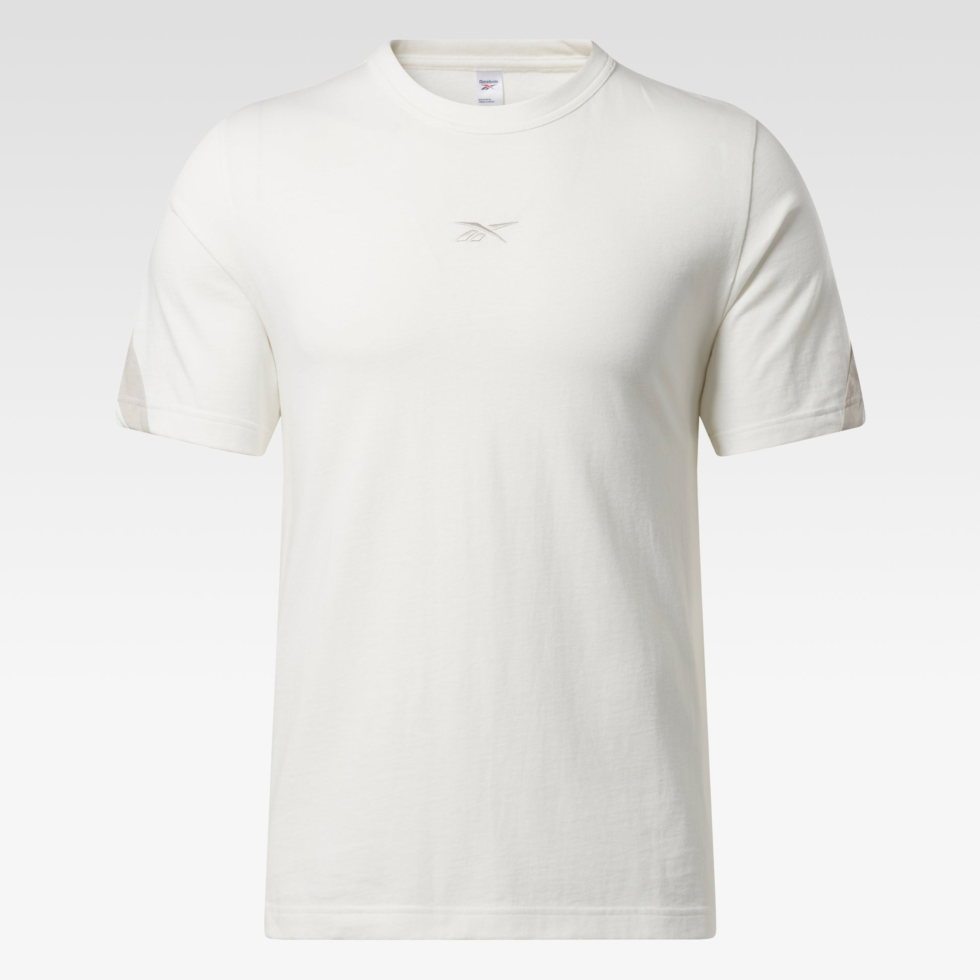 Simple, yet iconic. Show your Reebok pride in this t-shirt. An oversized sewn Vector logo spans from the back of one sleeve to the other. The front has an embroidered logo for sporty style.