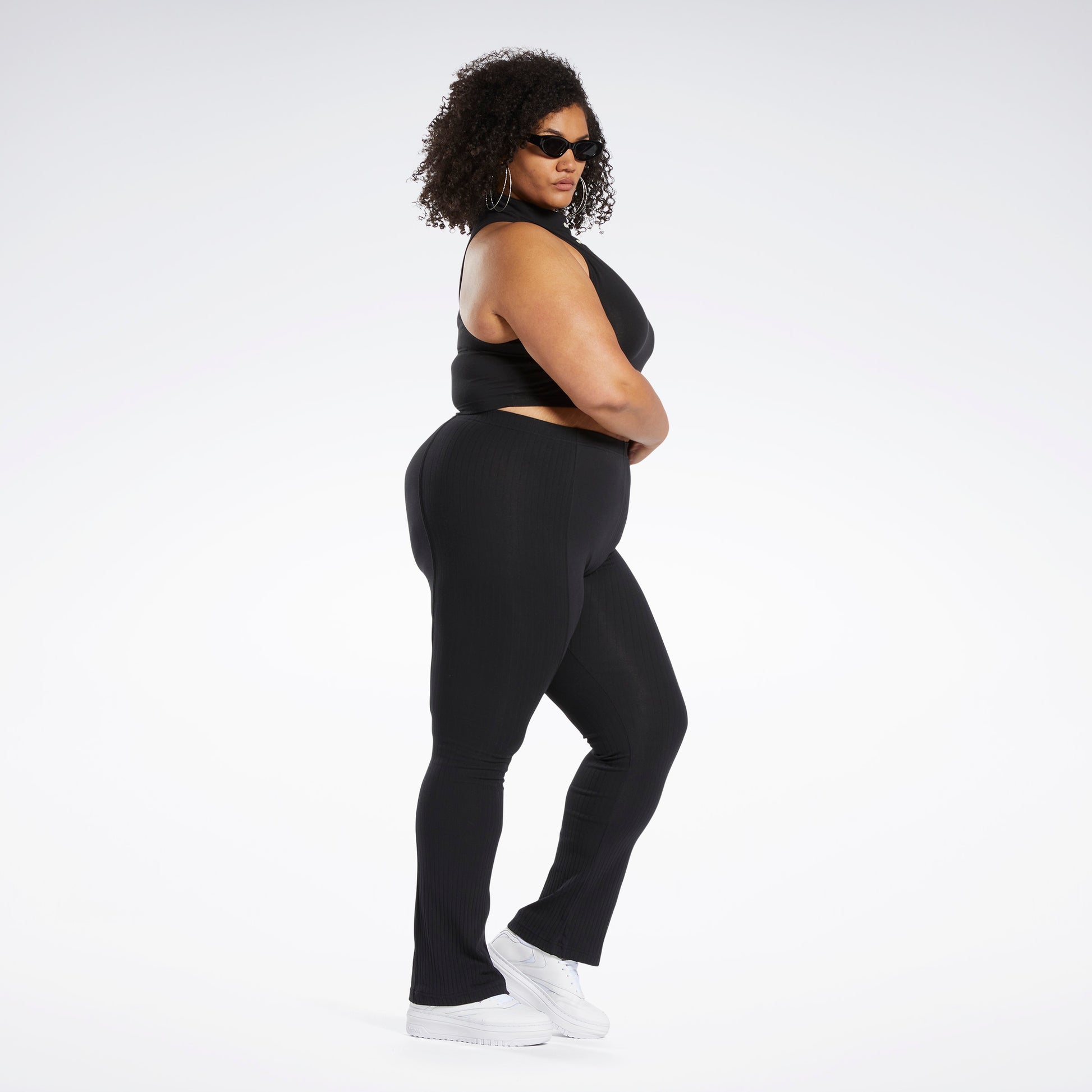 Flattering is the keyword here. These women's leggings have a flared leg and high-rise waist for comfort and style. An understated Reebok Vector is barely there for a low-key look.