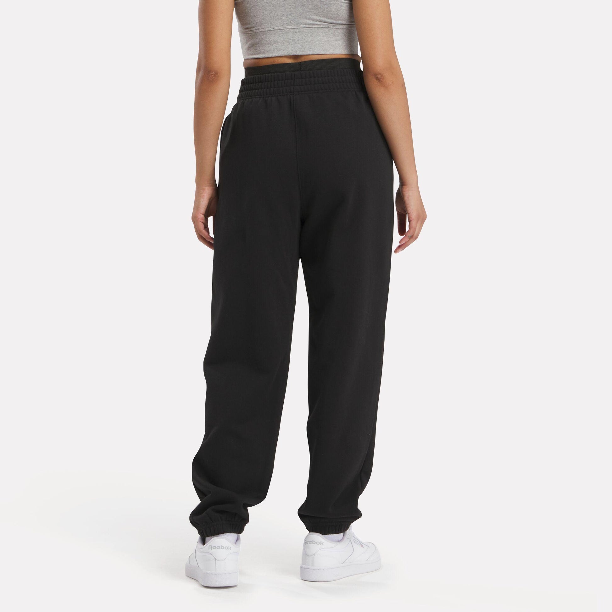 Rest day vibes are all about comfort. These Reebok pants for women take that to heart in a supremely soft fleece fabric that feels great against your skin. The elastic waist gives you freedom of movement and ribbed cuffs taper the silhouette.