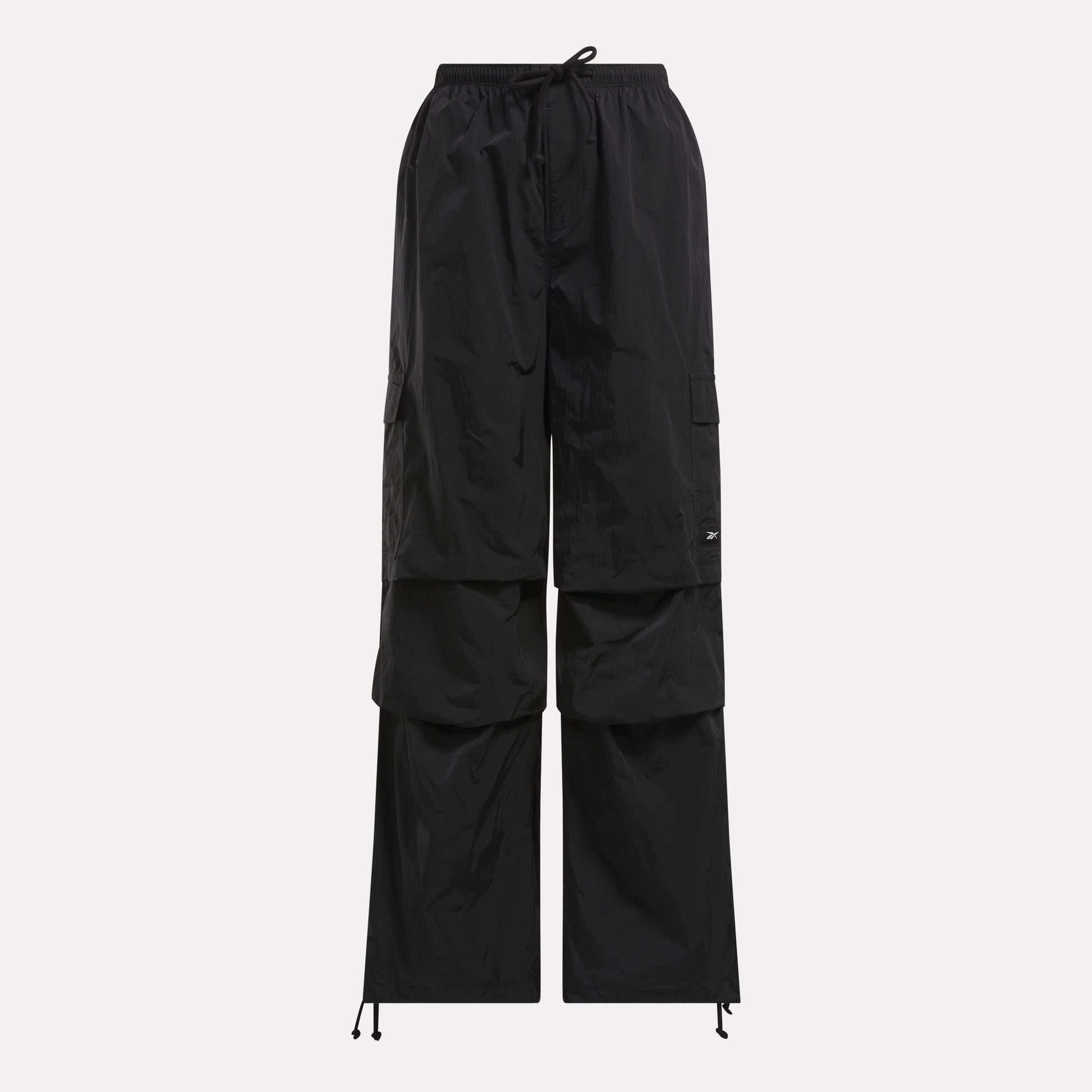 Hard-working style. These women's Reebok pants show off a utilitarian look with cargo pockets. Nylon fabric with a slight sheen adds dimension. A relaxed cut gives them an easygoing vibe.