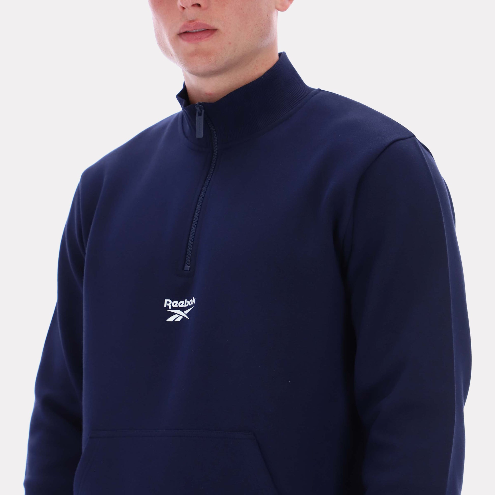 Classic comfort meets everyday versatility in the 1/4 Zip Sweatshirt. Crafted from soft cotton-poly brushback fleece, it features a relaxed fit with a mock neck, zip-up collar, and kangaroo pocket. Subtle Reebok branding at the chest keeps the look clean and timelessideal for layering or solo wear.