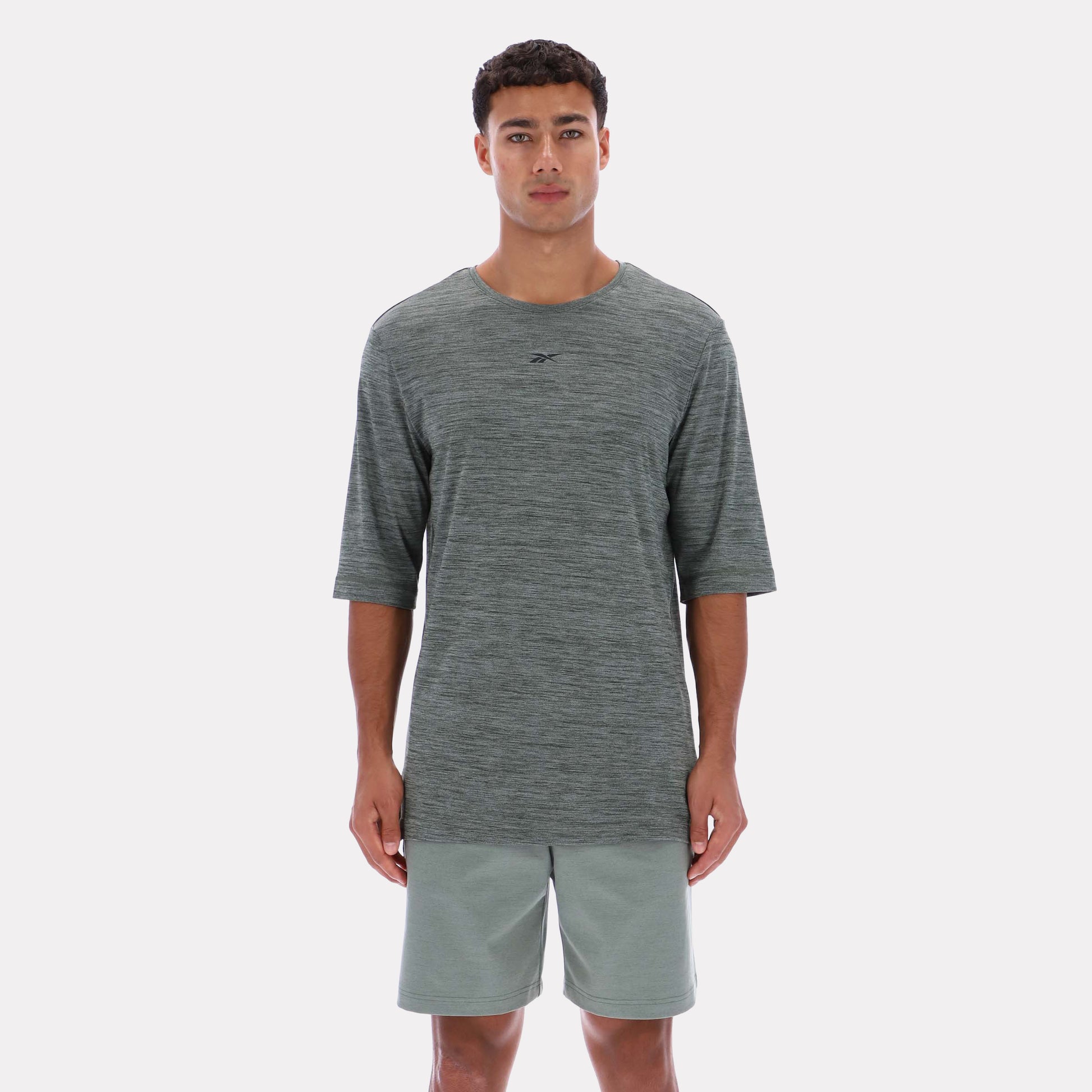 Reebok Men's Yoga Relaxed Long Line Tee In Green REG